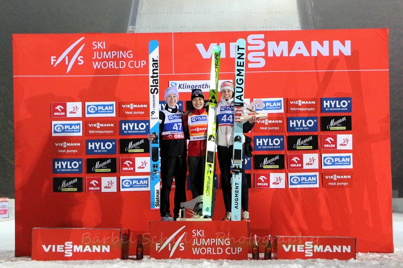 Hinter Sara Takanashi, die ihren nächsten vierten Platz einsammelte, schaffte Abigail Strate als Fünfte wieder ein Top-Ten-Ergebnis. Bei ihrem Heimspringen landete Selina Freitag als Siebente ebenfalls unter den zehn Besten.